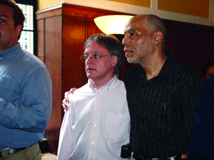 In the crowd was Richard Dietz, who with his partner Ron Madson, successfully sued the city for domestic partner benefits for all municipal employees in 1993. He said, “We had a date to go to Cartier to buy rings today,” in anticipation of a favorable ruling. They went to the store, but could not bring themselves to buy the rings.