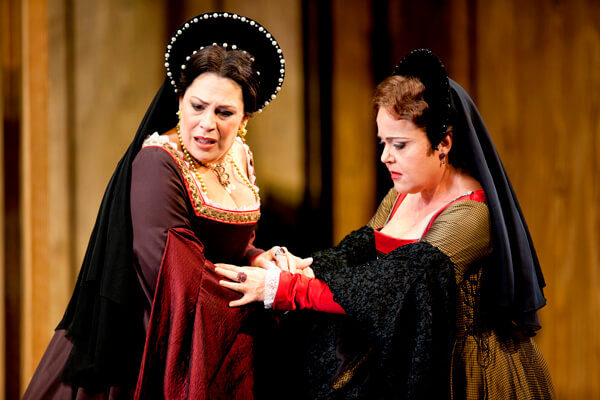 Sondra Radvanovsky and Sonia Ganassi in the Washington National Opera’s production of “Anna Bolena.” | SCOTT SUCHMAN