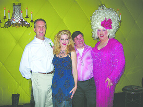 At last Thursday’s fundraiser for Team New York, Team member Alan Anderson, Shavonne Conroy, Team president Christian West, and Trai la Trash celebrate, as did Matthew Cusick, the former Cirque Du Soleil gymnast who will perform at Chicago’s Gay Games opening ceremony. MICHAEL T. LUONGO