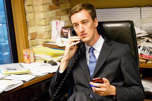 As the August 7 Democratic primary approached, Trevor Thomas worked the phones in his Grand Rapids campaign office. | TREVORFORCONGRESS.COM