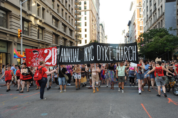 PHOTOS BY DONNA ACETO | The traditionally unpermitted Dyke March from Bryant Park in Midtown to Washington Square Park marked its 20th anniversary on Saturday afternoon, June 23. The event was big, exuberant, loud, and festive.