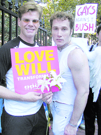 Local lawmakers joined the gay continent to protest both the Bush administrations’ war and anti-gay policies and the strain the convention has put on a city still coping with the unemployment and rebuilding needs created by the September 11 attacks.