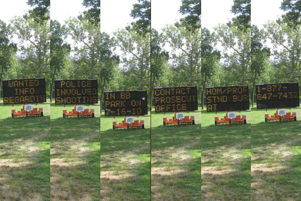 The Prosecutor’s Office did place an illuminated sign in the park that sought witnesses. That sign was placed next to a road and it took 18 seconds to cycle through its message, so drivers passing by would be unable to read the entire message.