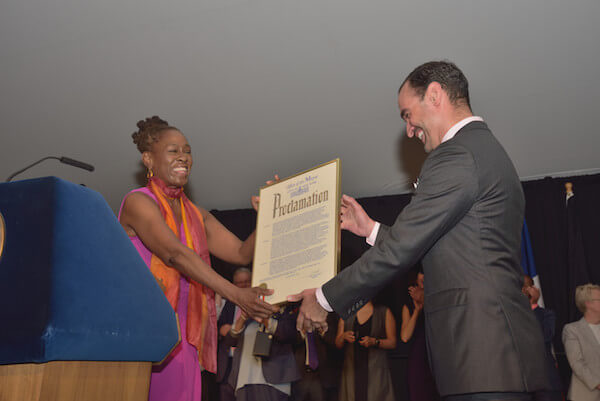 First Lady Chirlane McCray presents Javier Muñoz the mayoral proclamation of “Javier Muñoz Day.” | DONNA ACETO