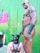 She was among the 7,000 to 8,000 leather/SM fetishists and onlookers who showed up for the 10th annual Folsom Street East fair, organized by the Gay Male S/M Activists (GMSMA). The laid-back street fair, named in honor of its long-running, much larger predecessor in San Francisco, was the centerpiece of Leather Pride weekend and is meant to bring the leather/SM scene and its devotees out of the dark shadows of the dungeon and into the bright, unthreatening public light of day.