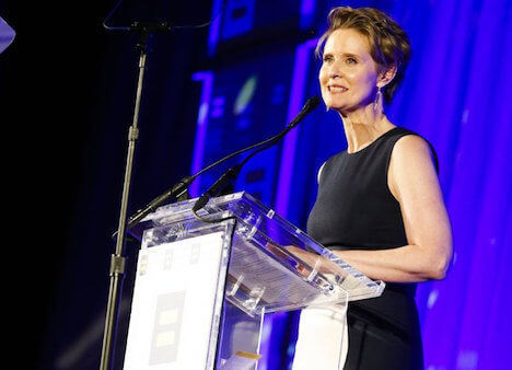 Cynthia Nixon accepting the Visibility Award at the Human Rights Campaign’s 2018 Greater New York dinner in February. | COURTESY OF HRC