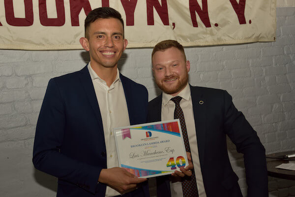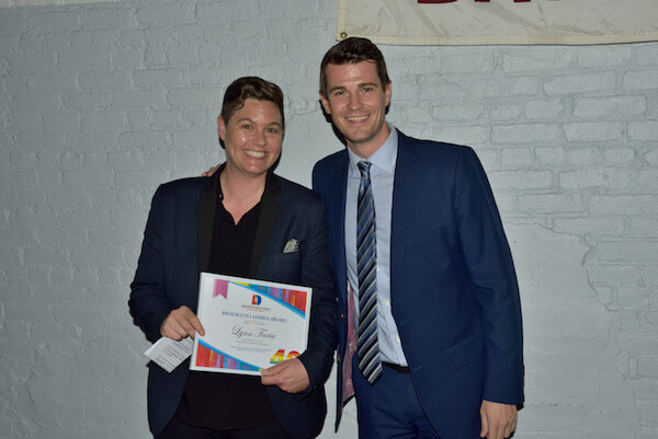 GMHC’s Lynn Faria, an LID honoree, with Matthew McMorrow, a senior aide to Mayor Bill de Blasio. | DONNA ACETO