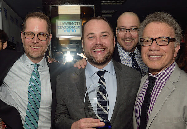 City Council Speaker Corey Johnson, honored by the Stonewall Democrats, seen here with Upper West Side Councilmember Mark Levine, Bronx State Senator Gustavo Rivera, and former Bronx Councilmember Jimmy Vacca. | DONNA ACETO