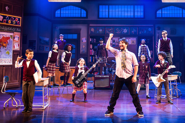 The show is, of course, based on the movie of the same name, but it was new to me. The plot concerns Dewey, who dreams of being a rock star but can’t even cut it in the band he created. As an iconic man-child, he’s reluctant to give up his dreams even in the face of economic disaster. He takes a phone call intended for his roommate and, out of desperation, passes himself off as a substitute teacher at a tony prep school. In classic fish-out-of-water style, he shakes up the world and ultimately transforms kids, parents, and the principal into people who break the shackles of their staid lives and rediscover the joy of living… through rock music, of course. In short, it’s a take on “Peter Pan” with a powerful backbeat.