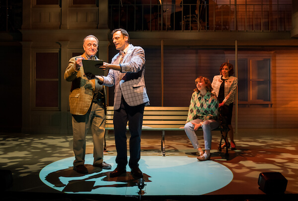 The score, performed by a miniature orchestra on a prominent balcony onstage, is a pleasing mix of moody ballads, charm songs, and rousing anthems, all with a distinct klezmer inflection. One heartbreaking number sung by Harry, “Frannie’s Hands,” recalls the famous Sondheim ode to marital devotion “In Buddy’s Eyes,” from “Follies.”