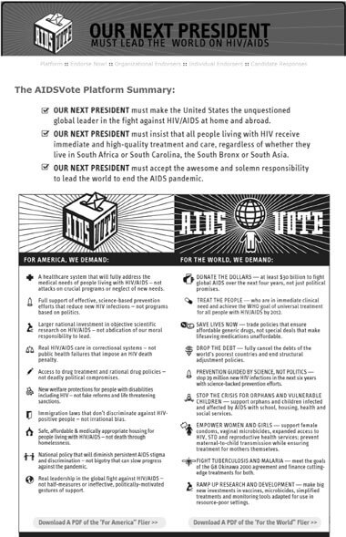 To date, over 1,400 individuals and 160 groups have backed the aidsvote.org platform.