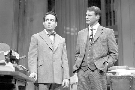 This question is at the heart of Richard Greenberg’s engaging and gently entertaining play, “The Violet Hour,” currently at the Biltmore. Mr. Greenberg tells the story of John Pace Seavering, who in 1919 is a veteran of the Great War and has returned to New York to set up shop as a publisher. He must choose between two manuscripts for his first effort—a memoir of his African American lover, the singer Jessie Brewster, and the epic, ungainly novel by his Princeton friend Denis McCleary. At the outset, the play is a fairly straightforward drama, until Pace’s assistant, Gidger, announces the arrival of a strange machine. The play takes a surreal turn as the machine starts spitting out pages of books at the end of the 20th century, many of which coincidentally, concern the fates, at times tragic, of the characters involved.