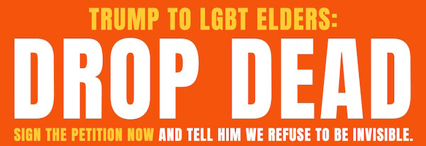 In April, when SAGE and other senior advocates first learned of DHHS’ intention to modify the survey, the group waged a dramatic public campaign with the slogan: “TRUMP TO LGBT ELDERS: DROP DEAD,” playing off the famous Daily News front page castigating President Gerald Ford’s refusal to bail out New York City during the height of the 1970s fiscal crisis. SAGE also emphasized in its advertising, “We refuse to be invisible.”
